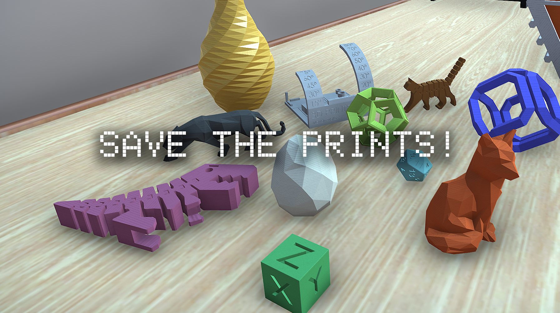 Many of the 3D print models in the game are sourced from the incredible 3D printing community. A list of these models and where to download them, along with the Unity project and source code for Save the Prints is available for free on GitHub here (https://github.com/nuehado/SaveThePrints).